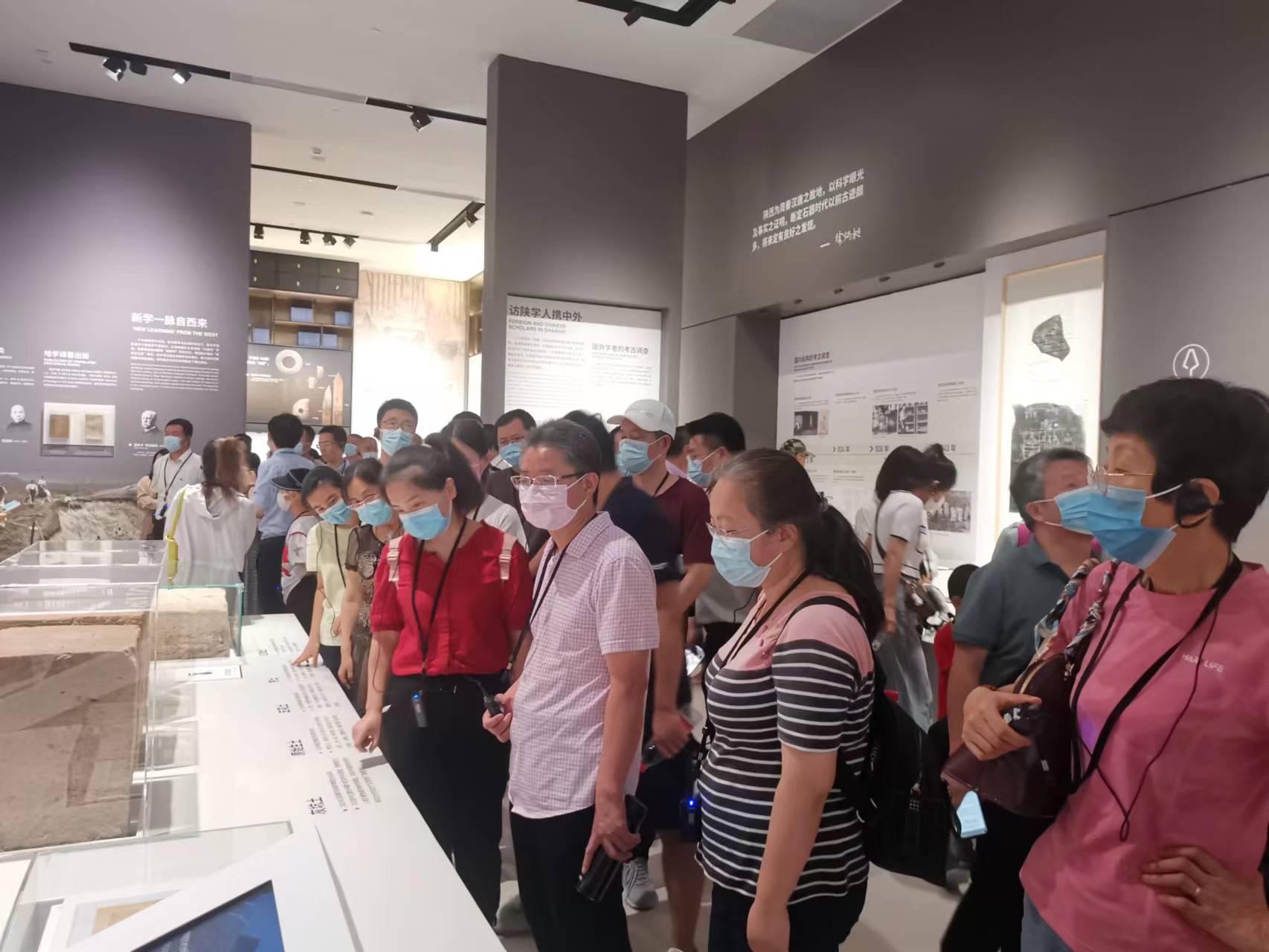 在讲解员的带领下,所有党员先后参观了五个展厅。通过对展厅内“考古历程”“文化谱系”“考古发现”“文保科技”四个篇章的观看,大家了解了中国考古和陕西考古的发展脉络,认识了中华文明历史文明演进过程和中华文明多元一体、相融并蓄的总体特征,体验了文物与科技融合的新方式。